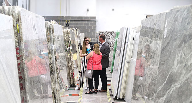 Find your perfect color from our 150+ selection of granite, quartzite, quartz, and more in our vast inventory.